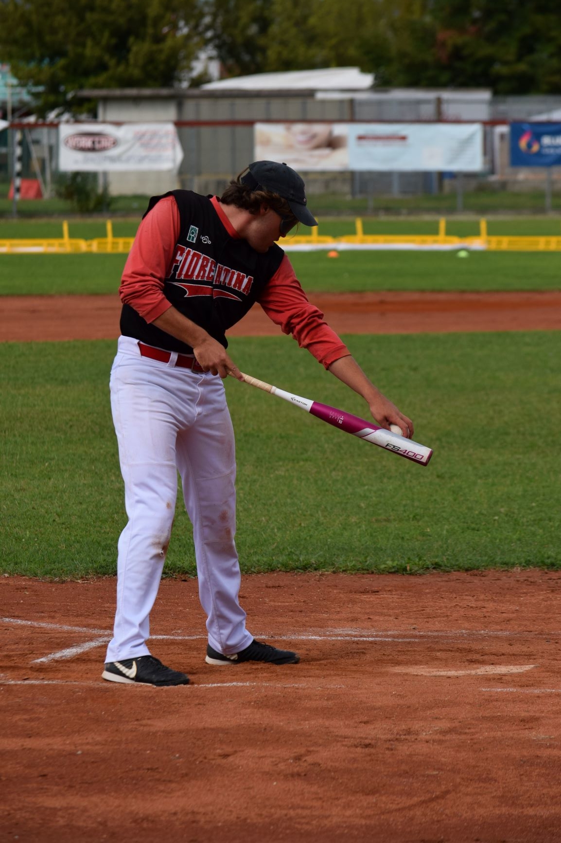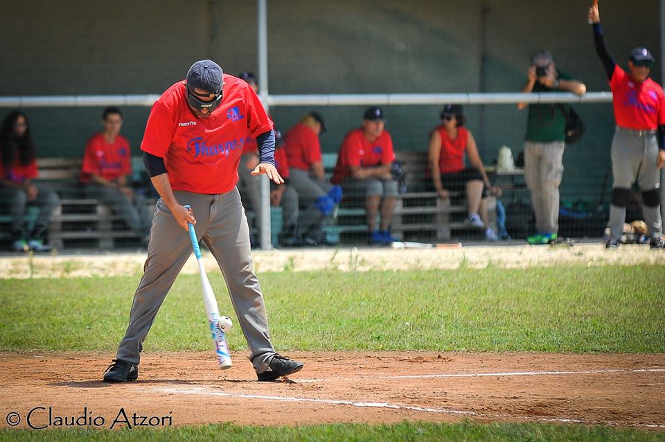 Nell’immagine sopra Andrea Pisu (Tigers Cagliari) di spalle con la casacca #29, autore di ben 3 fuoricampo contro I Patrini Malnate.