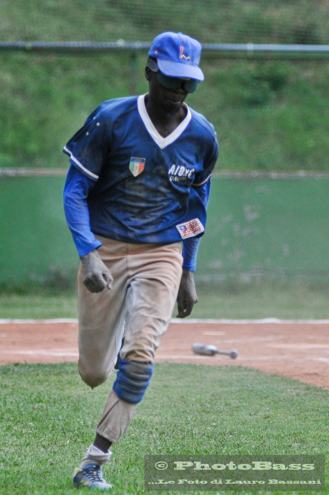 Nella foto sopra Dieng (Lampi Milano) mentre corre verso la prima base dopo uno dei suoi fuoricampo.