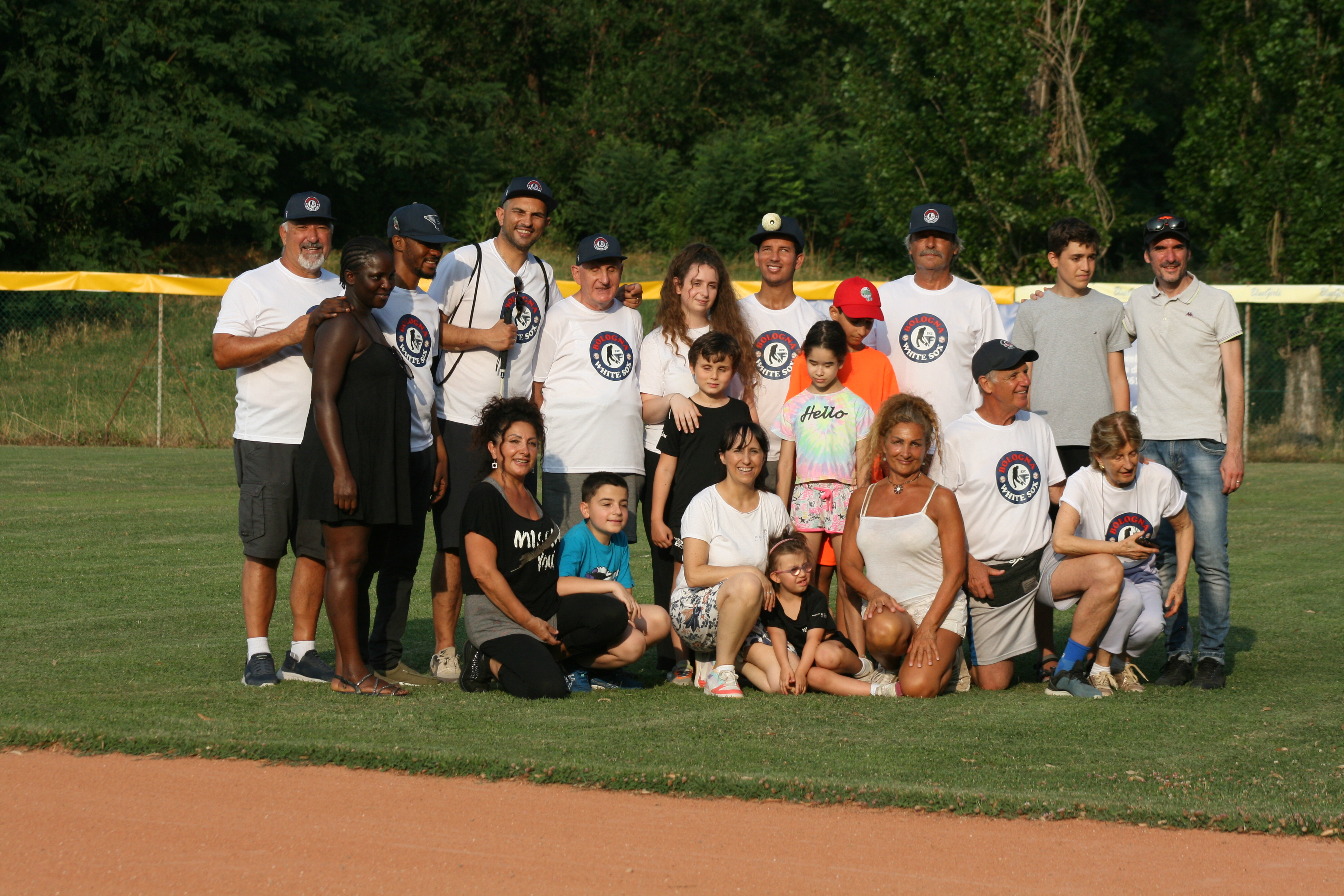 Nella foto sopra il gruppo dei piccoli atleti assieme a giocatori e assistenti dei White Sox.