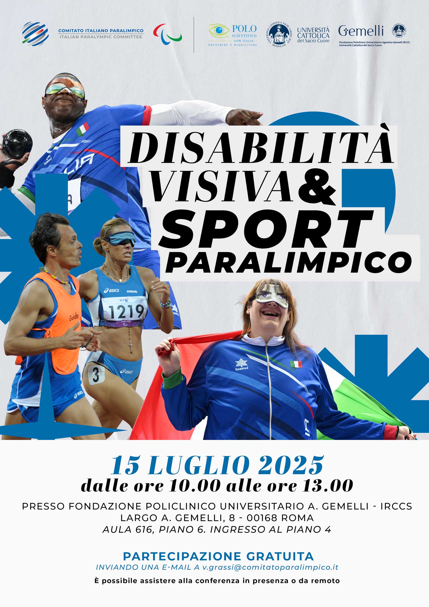 Martedì 15 luglio 2025 Dalle ore 10.00 alle 13.00 si terrà a Roma, presso l’Aula 616 della Fondazione Policlinico Universitario A. Gemelli IRCCS, la conferenza intitolata “Disabilità Visiva e Sport Paralimpico”, un evento dedicato interamente allo sport paralimpico per persone con disabilità visiva.