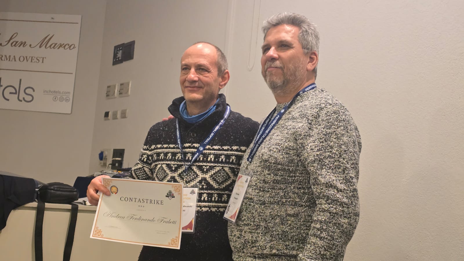 Nella foto sopra Andrea Fabretti premiato con il constratrike d’oro assieme a Corrado Pasquali.