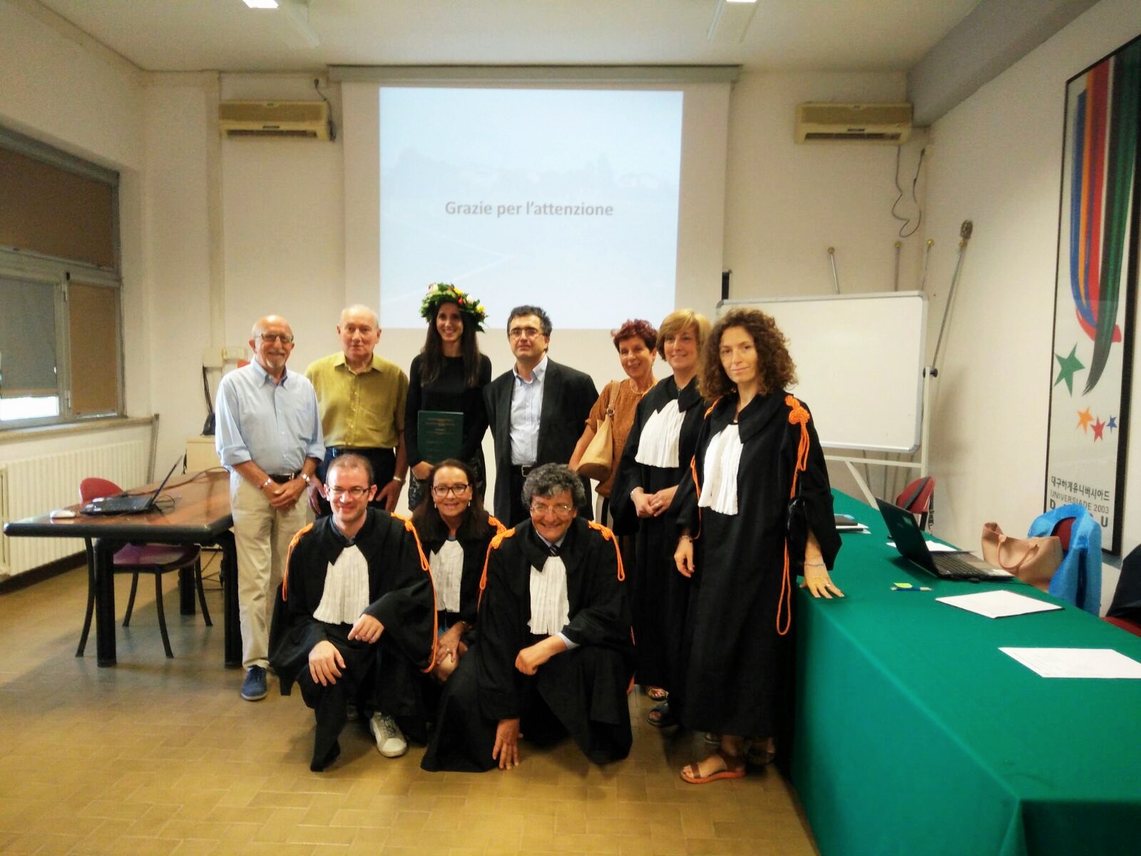 NELLA FOTO IL PRESIDENTE ALBERTO MAZZANTI, UMBERTO CALZOLARI, BENEDETTA FREDDI, ALESSANDRO MELI E VANNA BRUZZI DI AIBXC, ASSIEME A TUTTI I DOCENTI COMPONENTI DELLA COMMISSIONE DI LAUREA.