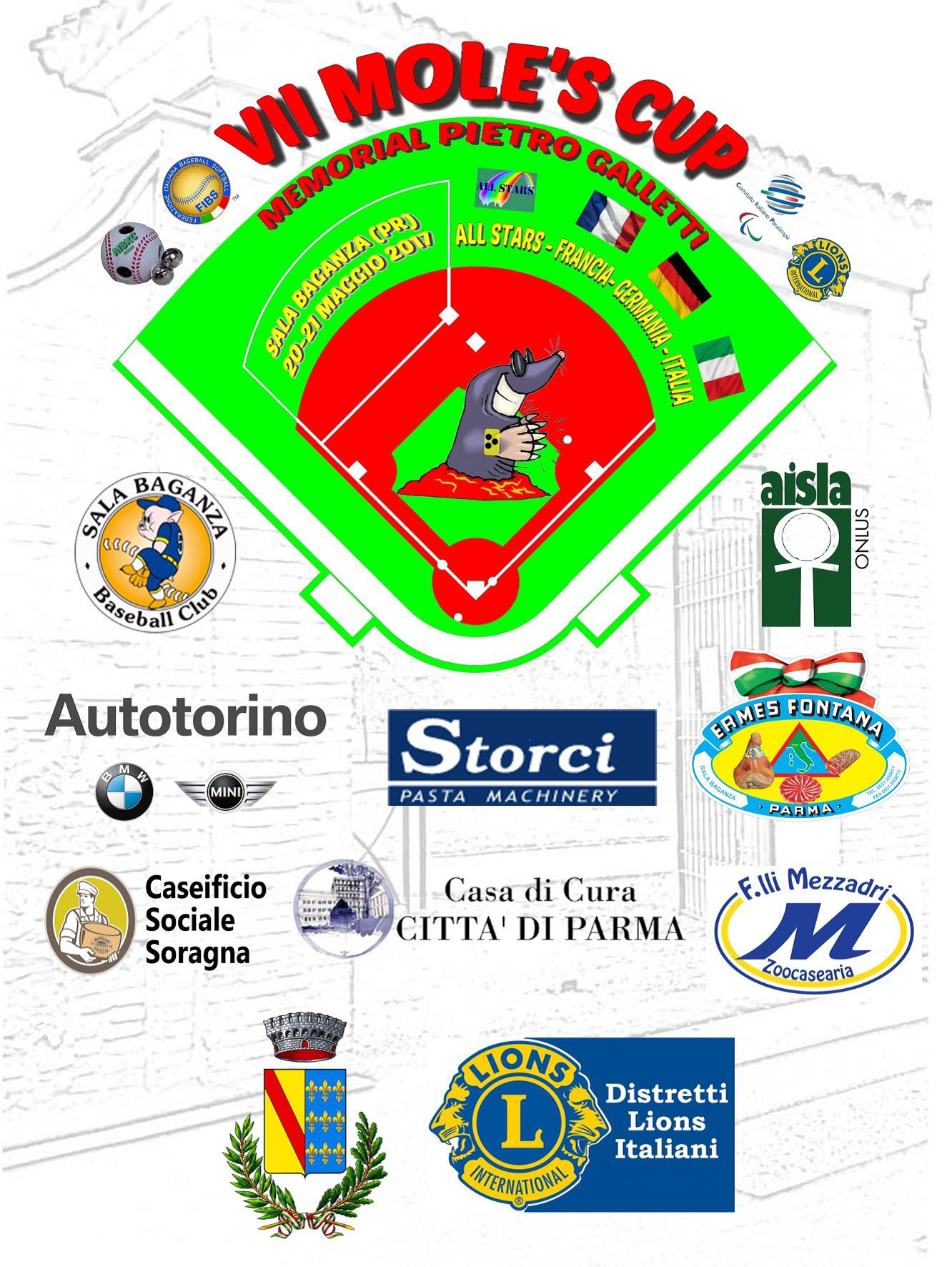 Sopra rappresentata la locandina dell’evento con il tradizionale disegno della talpa che sbuca dal monte del lanciatore del campo da baseball bxc, mentre all’esterno destro sono scritti i nomi delle squadre con le relative bandiere nazionali ed all’esterno sinistro il luogo e la data dell’evento il tutto circondato dai loghi Aibxc –Fibs- Cip- Lions e dei numerosi sponsor della manifestazione.