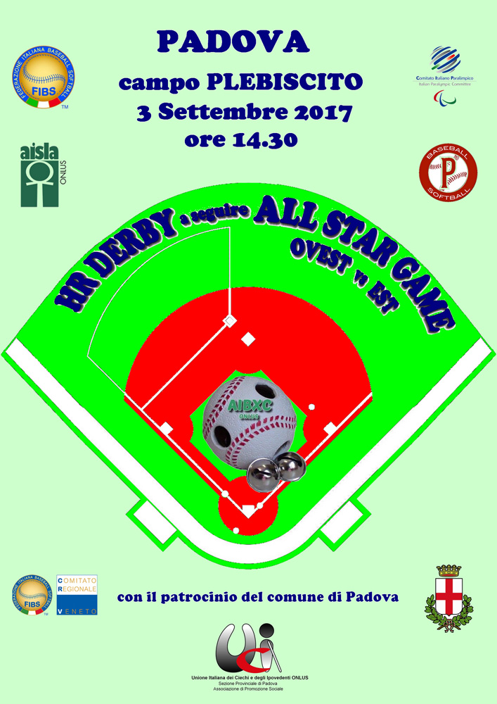 Nell'immagine sopra riprodotta la locandina dell'evento che riproduce il campo da baseball BXC con i loghi ufficiali di AIBXC, FIBS, CIP, PADOVA BSC ,del comitato Fibs regionale Veneto, UICI Padova e del Comune di Padova che ha patrocinato l'evento.