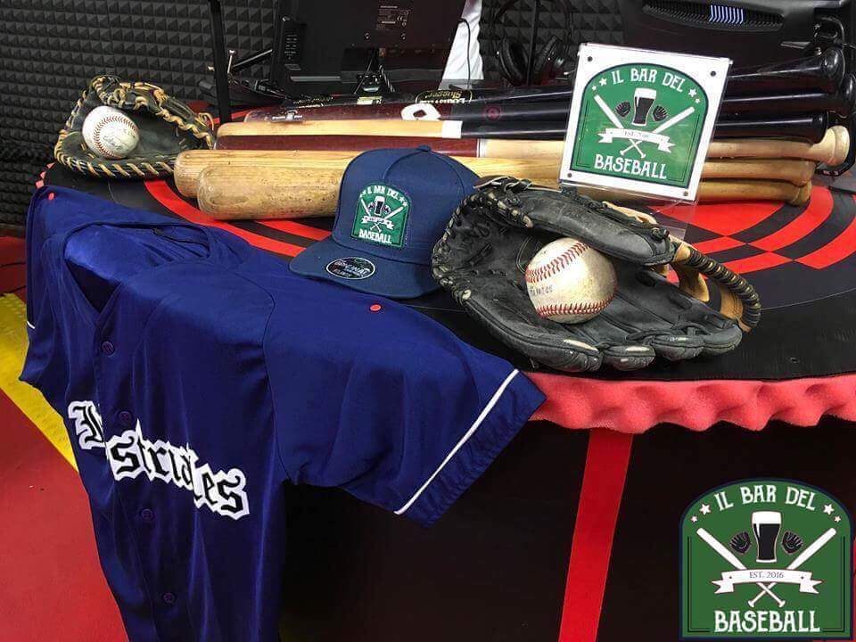 Nella foto di copertina un tavolino allestito con del materiale da baseball: maglie, mazze, guantoni e palline.