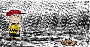 Nell'immagine di copertina Charlie Brown sotto la pioggia nel campo da baseball completamente allagato. Sulla destra per terra il suo guantone da baseball.