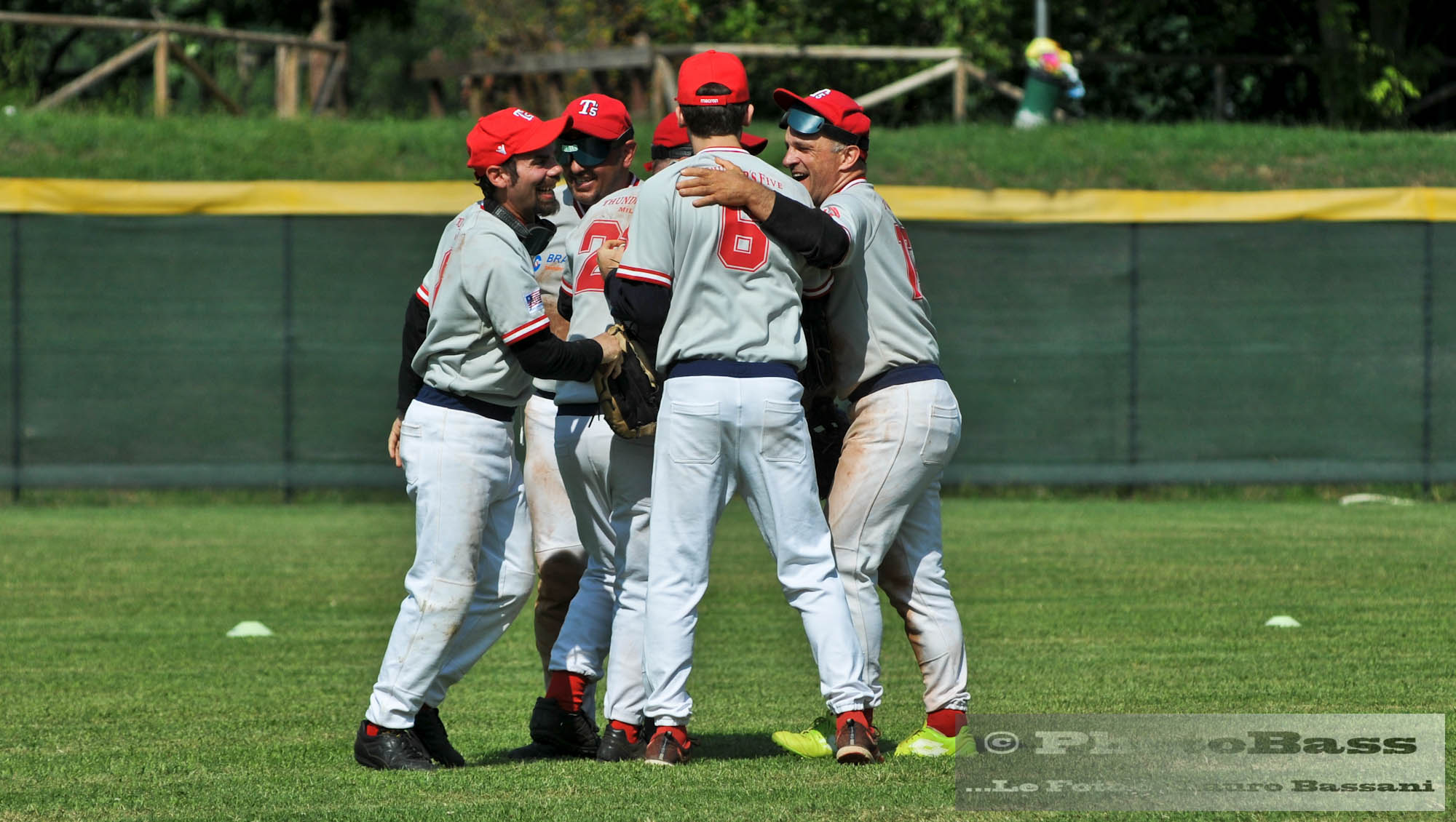 Prestazione autoritaria e matura per i Tuoni che coronavano un percorso netto in regular season fatto di sole vittorie com’era accaduto lo scorso anno ai Patrini Malnate. Uomo copertina della finale e probabile MVP dei play-off Ivan Nesossi (5 su 8,2 HR, 6 pbc ed 1 Ass.) autore, oltre che di una grande prova in attacco, anche di un’assistenza psicologicamente fondamentale nel secondo inning su Ghulam in situazione di basi piene. Sempre determinante il lavoro difensivo di Casale (2 su 8,3 pbc ed 8 Ass.), capace di intimorire con la sua sola presenza anche questa volta i battitori avversari. Menzione d’onore per i senatori Scali (5 su 8, 2 pbc ed 1 Ass.) e Cusati (4 su 8 e 2 pbc), ma soprattutto per Rosafio (6 su 8 con 4 pbc) per l’ottima prestazione come DH.