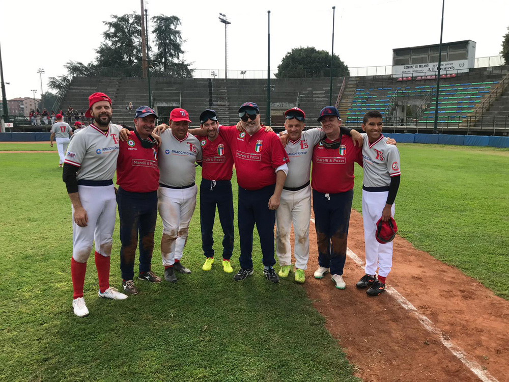 La vincitrice del girone si decideva nel terzo incontro della giornata, nel quale si confrontavano le finaliste della scorsa edizione della Coppa Nazionale: Roma AllBlinds e Lampi Milano. Inizio confortante per i giocatori di Manager Molon, che apparivano da subito frizzanti nel box di battuta con una serie di corse ed anche un’extrabase che li portava sul 4 a 0 parziale. I Capitolini (privi di Federico Bassani) tuttavia non si scomponevano particolarmente e dimezzavano lo svantaggio grazie ad un HR da 2 punti di Napoli. I Lampi provavano a scappare in avanti ma Capitan Somma e compagni si mantenevano in scia sul 5 a 4 che rendeva il game incandescente come la temperatura atmosferica. I milanesi continuavano a spingere sull’acceleratore e grazie anche ad un sorprendente Gerges e ad un line-up costante producevano una serie di valide che si traducevano in punti fino ad ottenere dopo due inning devastanti la vitttoria per 15 a 4 al termine della sesta ripresa.