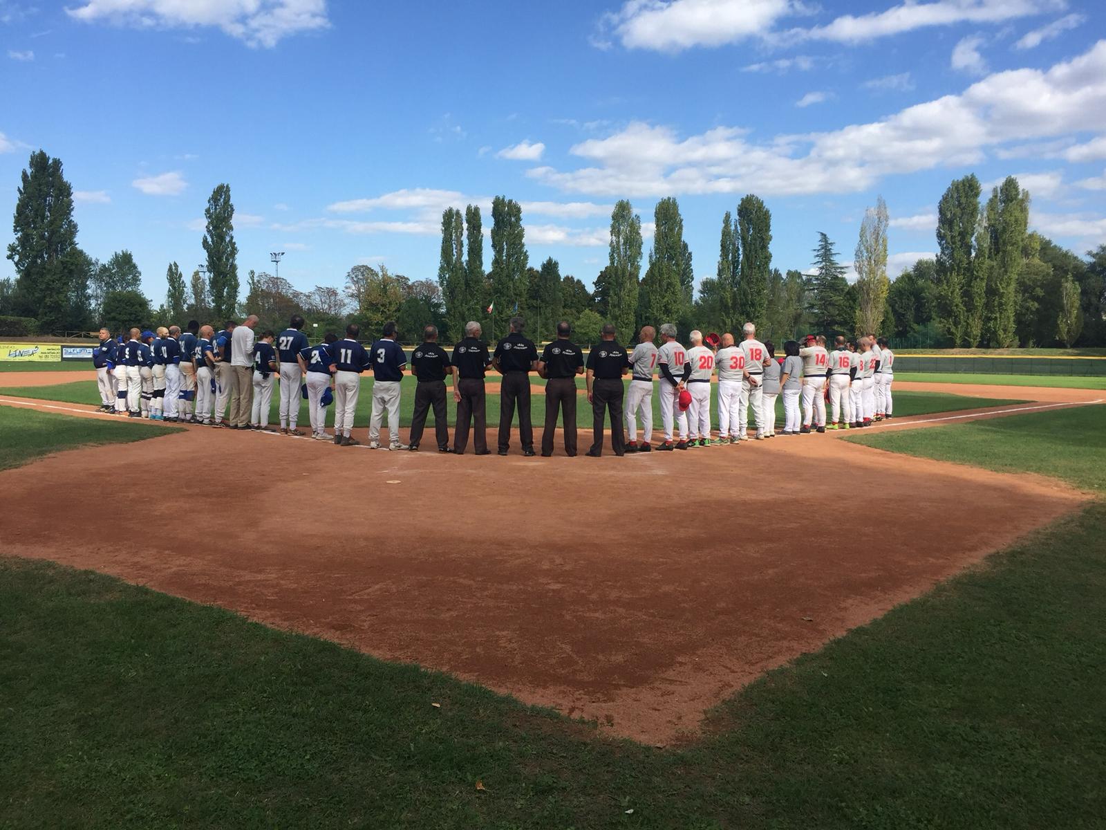 Nell'immagine di copertina foto ripresa da casa base delle due squadre schierate prima della finale per l'inno nazionale. Al centro gli arbitri della partita.