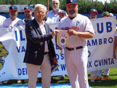 alla fine della gara di campionato tra Bologna e Blue Fire CUS Brescia, si è svolta una piccola cerimonia durante la quale Giovanni Maestrami, Presidente dei Lions valli Savena e Sambro , ha adottato la squadra dei Bologna WhiteSox-Cvinta consegnando il gagliardetto del Club all’allenatore Ricky Matteucci.
