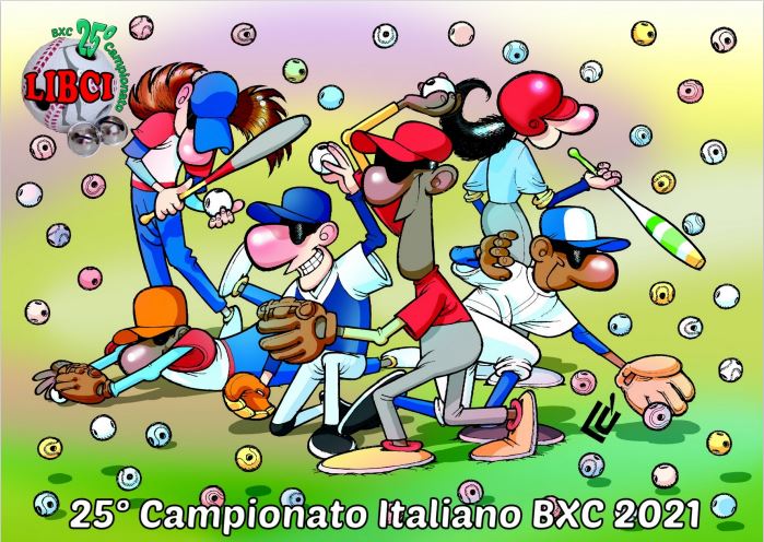 A riempire lo sfondo il logo commemorativo LIBCI, la scritta “25° Campionato Italiano BXC 2021” e le palline sonore di diversi colori.