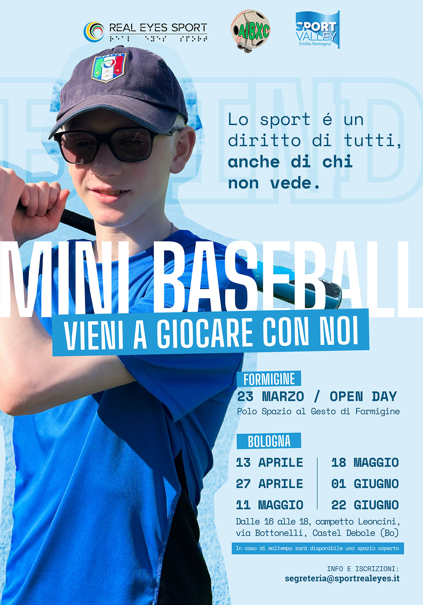 Dopo l'Open Day di Formigine continua l'attività di Mini Baseball Bxc a Bologna promossa da Real Eyes Sport in collaborazione con CIP Emilia Romagna, AIBXC e Sport Valley Emilia Romagna.